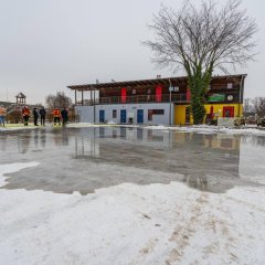 Auf dem Parkplatz an der Trattoria Venezia auf der Spreeinsel, in unmittelbarer Nähe der Burg Beeskow, entsteht aktuell eine Eisbahn, die Bürgerinnen und Bürgern in der aktuellen Frostperiode die Möglichkeit zum Schlittschuhlaufen direkt vor Ort bieten soll.