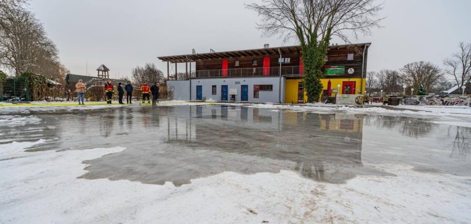Nach einer kurzfristigen Abstimmung mit dem Bürgermeister innerhalb der Stadtverwaltung sowie mit Feuerwehr, Ordnungsamt und weiteren Beteiligten konnten die notwendigen Voraussetzungen geschaffen werden, sodass die Eisbahn noch während der aktuellen Frostperiode realisiert werden kann. Sobald der Parkplatz vollständig geräumt und die letzten Vorbereitungen abgeschlossen sind, beginnt die Feuerwehr mit dem Fluten der Fläche.